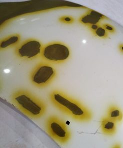 Material usado: WASH PRIME (Indicado como promotor de aderência anticorrosivo, para preparação de superfícies metálicas ferrosas e não ferrosas. a recuperação é feita fora do veículo, então a mesma precisa de PREPARAÇÃO FINAL, PINTURA E ALINHAMENTO NO VEICULO QUE SERÁ INSTALADA.