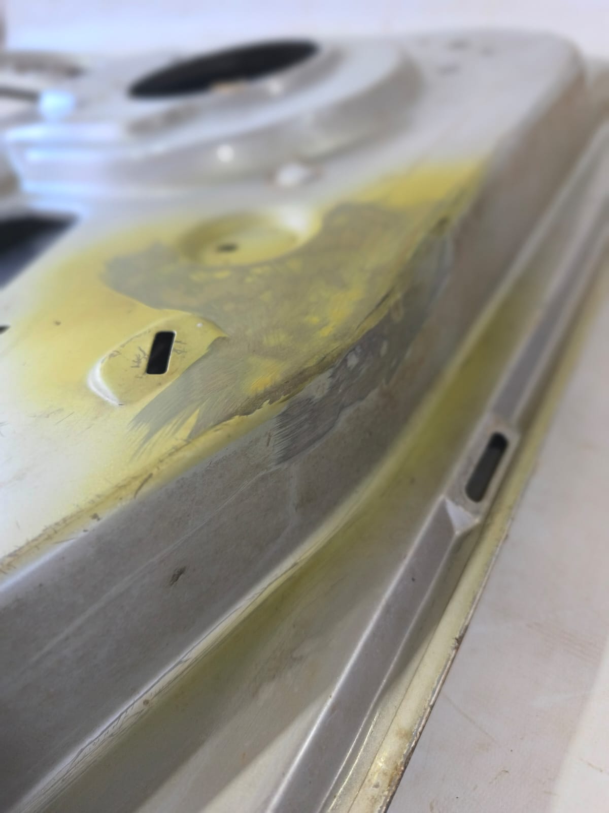 MATERIAL USADO: WASH PRIME (INDICADO COMO PROMOTOR DE ADERÊNCIA ANTICORROSIVO, PARA PREPARAÇÃO DE SUPERFÍCIES METÁLICAS FERROSAS E NÃO FERROSAS. A RECUPERAÇÃO É FEITA FORA DO VEÍCULO, ENTÃO A MESMA PRECISA DE PREPARAÇÃO FINAL, PINTURA E ALINHAMENTO NO VEICULO QUE SERÁ INSTALADA.